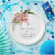 These romantic floral wedding plates feature a simple white background with watercolor pink and white lilies. A delicate bouquet of lily flowers and greenery is pictured on the top.