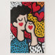 A vibrant and playful pop art illustration showcasing a couple in love. The artwork features bold patterns, bright colors, and whimsical hearts, emphasizing the theme of romance and affection. Perfect for Valentine’s Day designs, greeting cards, or romantic-themed projects.