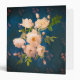 Romantic vintage roses in powder red on a night blue rose pattern background, romantic victorian and gothic style design.