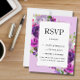 Set the tone for your special day with our Romantic Purple Floral RSVP Card, a perfect blend of elegance and charm. Adorned with delicate watercolor blooms in shades of purple, lavender, and violet, this RSVP card brings a graceful touch to your wedding stationery suite.