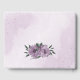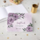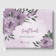 Unique wedding guest book featuring romantic dusty purple flowers and green leaves.