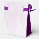 Beautiful romantic wedding guest book featuring purple flowers and some green leaves .