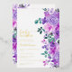Romantic purple lavender pastel wild flowers spring summer baby shower with real gold foil and with pretty wild country flowers in purple , lavender and green, with a brushed script typography on an elegant editable white background.