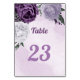Romantic purple & white floral greenery table number
