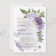 Romantic purple and white flowers and green leaves botanical save the date invitation