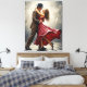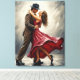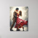 Bring passion and poetic charm to your space with this stunning canvas print featuring a couple dancing in the rain. The gentleman, dressed in vintage brown with a classic black hat, holds his partner in a captivating embrace. She, swirling in a vivid red dress, radiates grace and movement, as raindrops accentuate the magic of their moment.