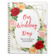 This beautiful and elegant notebook would make a great wedding planner, photo album, guest book and more. The design features watercolor red, pink and orange roses with foliage on a gold geometric frame. The text combines handwritten script and serif fonts for a stylish and modern look. This is perfect for a summer rustic wedding.