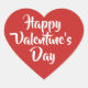 Red heart shaped stickers or envelope seals with white trendy hand lettering that reads "Happy Valentine's Day" in white. Simple, and classic.