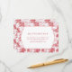 This wedding enclosure card features a charming pastoral theme with a repeating pattern of idyllic rural scenes in soft red hues against a crisp white background. The central label, framed by an ornate border, highlights the main details in bold serif typography, guiding guests to visit a customizable website for more information. The vintage engraving style adds a touch of nostalgia and elegance, perfect for setting a warm and traditional tone for your special day. Ideal for weddings, this design balances visual appeal with clarity, ensuring your event details are both inviting and easily accessible.