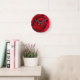 Romantic Red Rose in full bloom with Dots Round Clock