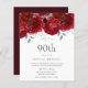 Romantic Red Roses Silver 90th Birthday Invitation
