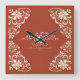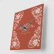 The "Mr & Mrs" wall clock design features a beautiful watercolor artwork of a white floral frame on a warm, earthy red background. The couple's last name and special date can be easily customized. This personalizable wall clock makes a wonderful wedding gift as it serves as a sentimental reminder of the couple's time together and is a practical, long-lasting addition to their new home.
