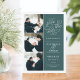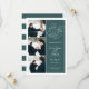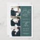 Simple and elegant, our Romantic Request photo save the date card features three of your favorite engagement photos aligned along the left side, with your wedding details on the right in white on forest green. "Save the date" appears in white script typography with a chic heart worked into the design. Add your wedding details, including names, wedding date, and location. Cards reverse to modern horizontal stripes in hunter green and white, with an additional text field for your wedding website or additional information..