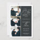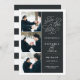 Simple and elegant, our Romantic Request photo save the date card features three of your favorite engagement photos aligned along the left side, with your wedding details on the right in white on inky off-black. "Save the date" appears in white script typography with a chic heart worked into the design. Add your wedding details, including names, wedding date, and location. Cards reverse to modern horizontal stripes in charcoal and white, with an additional text field for your wedding website or additional information..