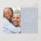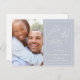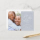 Simple and elegant, our Romantic Request photo save the date postcard features your favorite engagement photo on the left side, with your wedding details on the right. "Save the date" appears in white script typography with a chic heart worked into the design, against a light gray-blue background. Personalize with your wedding details, including names, wedding date and location, and add additional details to the back, including your wedding website and return address.