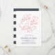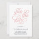 Simple and elegant, our Romantic Request wedding save the date card features "save the date" in coral pink script typography with a chic heart worked into the design. Add your wedding details, including names, wedding date, location and website, in dusty gray-blue lettering. Cards reverse to modern horizontal stripes in muted navy and white.