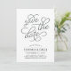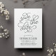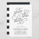 Simple and elegant, our Romantic Request wedding save the date card features "save the date" in deep charcoal off-black script typography with a chic heart worked into the design. Add your wedding details, including names, wedding date, location and website beneath. Cards reverse to modern horizontal stripes in matching brushed black and white.
