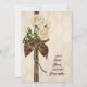 Cream colored roses and pearls with brown satin bouquet for wedding vow renewal.