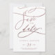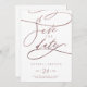 This romantic rose gold calligraphy save the date card is perfect for a simple wedding. The modern classic design features fancy swirls and whimsical flourishes with gorgeous elegant hand lettered faux rose gold foil typography.