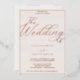 This elegant wedding invitation features a soft blush frame adorned with luxurious rose gold foil. The modern classic design includes whimsical swirls, flourishes, and hand-lettered rose gold foil typography, all framed in a formal foil border—perfect for a simple yet sophisticated celebration.