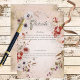 This wedding details card design features a beautiful soft blush pink and antique gold distressed background with a delicate pink, maroon, white, purple, and green floral sprays. It's romantic with a touch of vintage. Created by Simply Farmhouse Press, it's part of the Romantic Rose Pink Gold Floral Wedding Suite of cards.