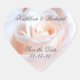 Beautiful soft pink rose on heart-shaped stickers. Customize with bride and groom names and wedding date and create a unique and personalized envelope seal for wedding invitiations. Photo Teri Francis. Matching cards and stamps available.