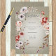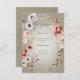 This wedding reception card design features a beautiful soft sage green distressed background with a delicate pink, maroon, white, purple, and green floral sprays. It's romantic with a touch of vintage. Created by Simply Farmhouse Press.