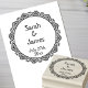 Create a unique and lasting impression for your wedding invitations, thank you notes, and other stationery with this elegant personalized rubber stamp. Featuring an intricate ornamental frame with a repeating heart motif, this stamp is a perfect addition to your wedding day. The custom stamp includes the newlywed's names and wedding date, making it a perfect keepsake for years to come. The stamp's durable rubber material ensures clear and consistent impressions every time. Use it to add a touch of elegance and sophistication to your wedding stationery.