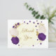 Romantic royal purple & white flowers gold thank you card
