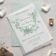 Romantic Sage Floral Wreath w/Lovebirds Wedding Vellum Invitations