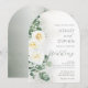 This elegant eucalyptus greenery wedding invitation showcases soft white roses, flowing botanical elements, and subtle gold accents for a fresh and sophisticated look. Ideal for greenery weddings, nature-inspired celebrations, and classic neutral themes.