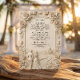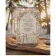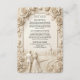 Invite guests with timeless elegance using this classical scenic design, featuring a romantic monochromatic palette and simulated stone relief details.This design features a sophisticated trompe l'oeil technique that simulates the look of a three-dimensional stone carving. A sculpted floral border of lush roses frames a serene vignette of a bride and groom walking away down a winding cobblestone path toward a distant country chapel nestled in rolling hills. The color palette utilizes soft shades of cream, ivory, and beige to enhance the faux bas-relief effect, creating shadows and highlights that suggest architectural depth. The text is presented in a traditional serif typography, maintaining a formal and clean layout structure.