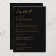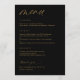 Elegantly adorned with delicate modern calligraphy script, this menu exudes an air of sophistication. The intricate detailing of the gold script against the black background adds an opulent touch, creating a harmonious visual spectacle that is as unique as your own love story.