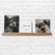 Custom wedding photo gallery picture ledge for your gallery wall, featuring two photos of choice and custom text for the third plaque - casual script font for a text of your choice as well as the couple's names and wedding date.
