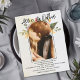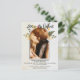 This elegant floral arch photo wedding invitation features a romantic script font paired with soft floral and greenery accents, creating a warm and timeless design.