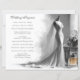 This elegant wedding program card features a delicate pencil sketch of a bridal dress on a mannequin, a vintage bouquet resting on a small table, and a classic perfume bottle inspired by Chanel — the only element in soft blush pink tones. A timeless design perfect for a romantic, black and white wedding with a vintage twist. Ideal for formal weddings, elegant garden ceremonies, and intimate soirées.