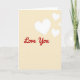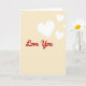 This greeting card centers on the words “Love You” written in smooth, flowing red cursive right in the middle. The letters look like they were drawn with a brush, with thicker and thinner strokes that make the message feel intimate. In the upper right area, a scatter of small white hearts floats upward, and one larger heart is partly cut off at the edge. The background is a soft beige that keeps everything calm and easy on the eyes. The simple layout makes the message feel direct, like you’re saying it out loud without overthinking it ❤️. It works for a partner, a close friend, or anyone you want to remind that they matter 🥰.