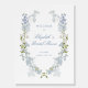 Elegant bridal shower welcome sign, adorned with a stunning soft blue and green floral frame and classic calligraphy.