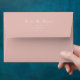Elegant blush wedding envelope with a soft blush and white delicate floral embellishment on the inside and classic calligraphy font.