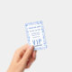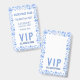 A guest table seating VIP pass announcing your event with a blank back to write your guest's name and table number. The badge is plastic so a permanent marker like a fine tip Sharpee is recommended, and each badge must dry completely before handling.