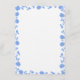 A wedding dinner menu featuring a soft pretty blue floral border offering a starter, 2 main course options, and dessert selections.