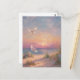 A stunning oil painting on canvas, capturing a serene sunset landscape with dreamy pastel hues and soft light. The sky is filled with delicate brushstrokes, creating a gentle atmosphere. Two graceful white doves glide through the sky, adding a touch of elegance. The sandy beach below is adorned with vibrant, colorful flowers, enhancing the light and airy ambiance. The artist's skillful brushwork lends depth and movement to this enchanting scene, offering a sense of tranquility that serves as a welcome retreat from the daily hustle. The captivating poster embodies the essence of the painting, bringing serenity and relaxation to any surrounding., poster, illustration, painting, painting, poster, illustration