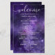 Set the tone for an unforgettable celebration beneath the stars with this elegant galaxy wedding ceremony program. The design features a deep purple watercolor sky dusted with glowing constellations, creating a dreamy celestial backdrop for your special day. The front side warmly welcomes guests to your ceremony and outlines each part of the event - from the processional to the exchange of vows - while the back lists your wedding party. This design combines modern elegance with the magic of outer space, perfect for celestial, starry night, or galaxy themed weddings. Ideal for beach weddings at sunset, evening receptions, or romantic celebrations under the open sky.