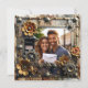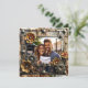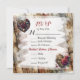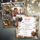 Cool and unique wedding wedding RSVP cards. Steampunk themed with gold and silver metal gears, flowers and a weathered wood background. Upload your favorite picture in the personalize area and edit the text on the back to add your wedding reception meal choices.