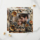 Cool and unique wedding wedding Save the Date cards. Steampunk themed with gold and silver metal gears, flowers and a weathered wood background. Upload your favorite picture in the personalize area and edit the text on the back to add your own wedding info.