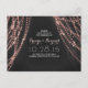 Chalkboard save the date postcards with pink string lights design - wedding lights backdrop.