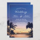 Romantic Sunset Palm Beach String Lights Wedding Invitation