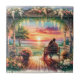 Romantic Sunset Porch View Illustration Ceramic Tile