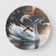 Wall clock featuring a painting of two swans. The classic Roman clock numbers can be deleted if you do not need them. As swans are known to stay together for their entire life, this a beautiful gift for a wedding or anniversary.