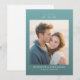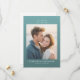 This wedding save the date design features a minimalistic layout with a soft, pastel teal background that frames a central square photo placeholder. The warm, golden-hour filter on the image creates a romantic and serene atmosphere, perfect for capturing the love between two individuals. Clean, modern sans-serif typography is used throughout, ensuring readability while maintaining an elegant aesthetic. Customizable text fields allow for personalization of dates and names, making it ideal for couples planning their special day in Franklin, Tennessee. The overall mood is one of warmth and anticipation, celebrating the joy of upcoming nuptials.